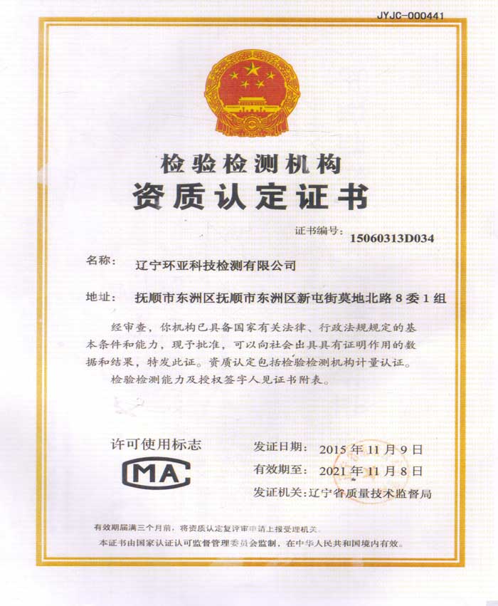 • 檢驗檢測機構(gòu)資質(zhì)認定證書
